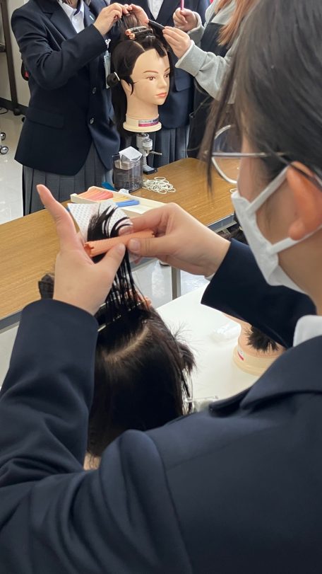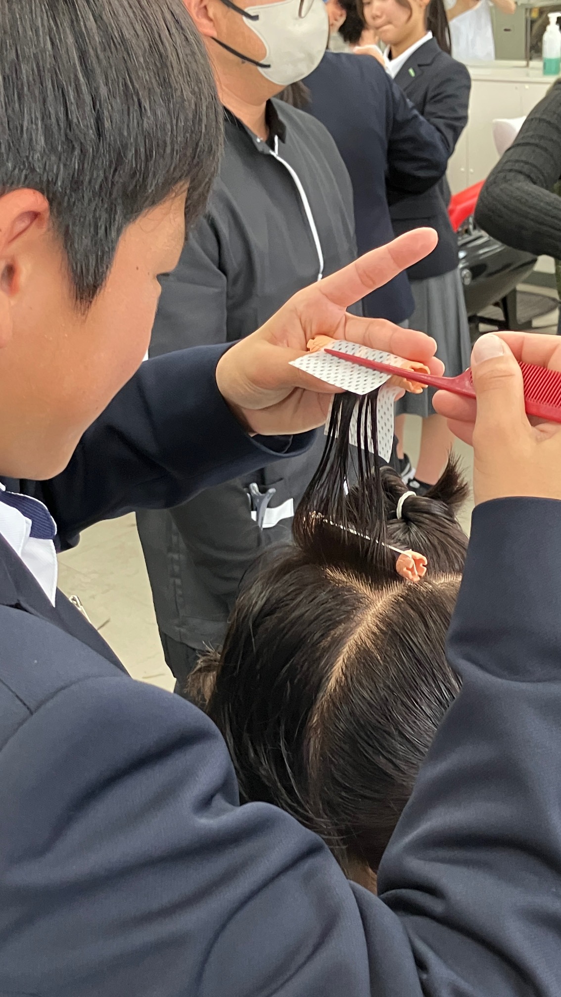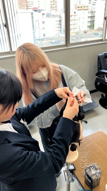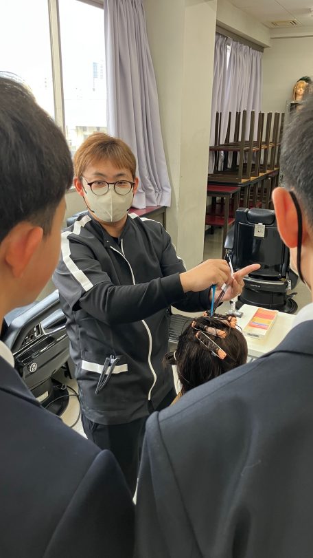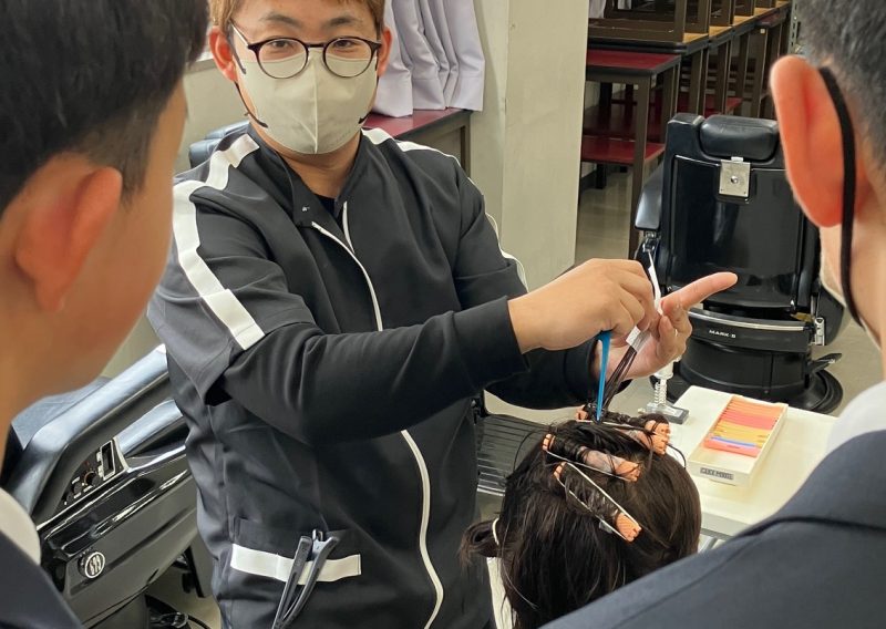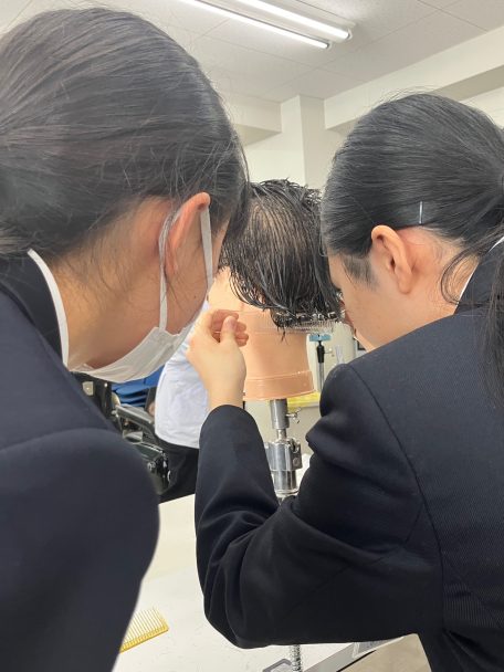 や実際にハサミを持ってカット演習も。