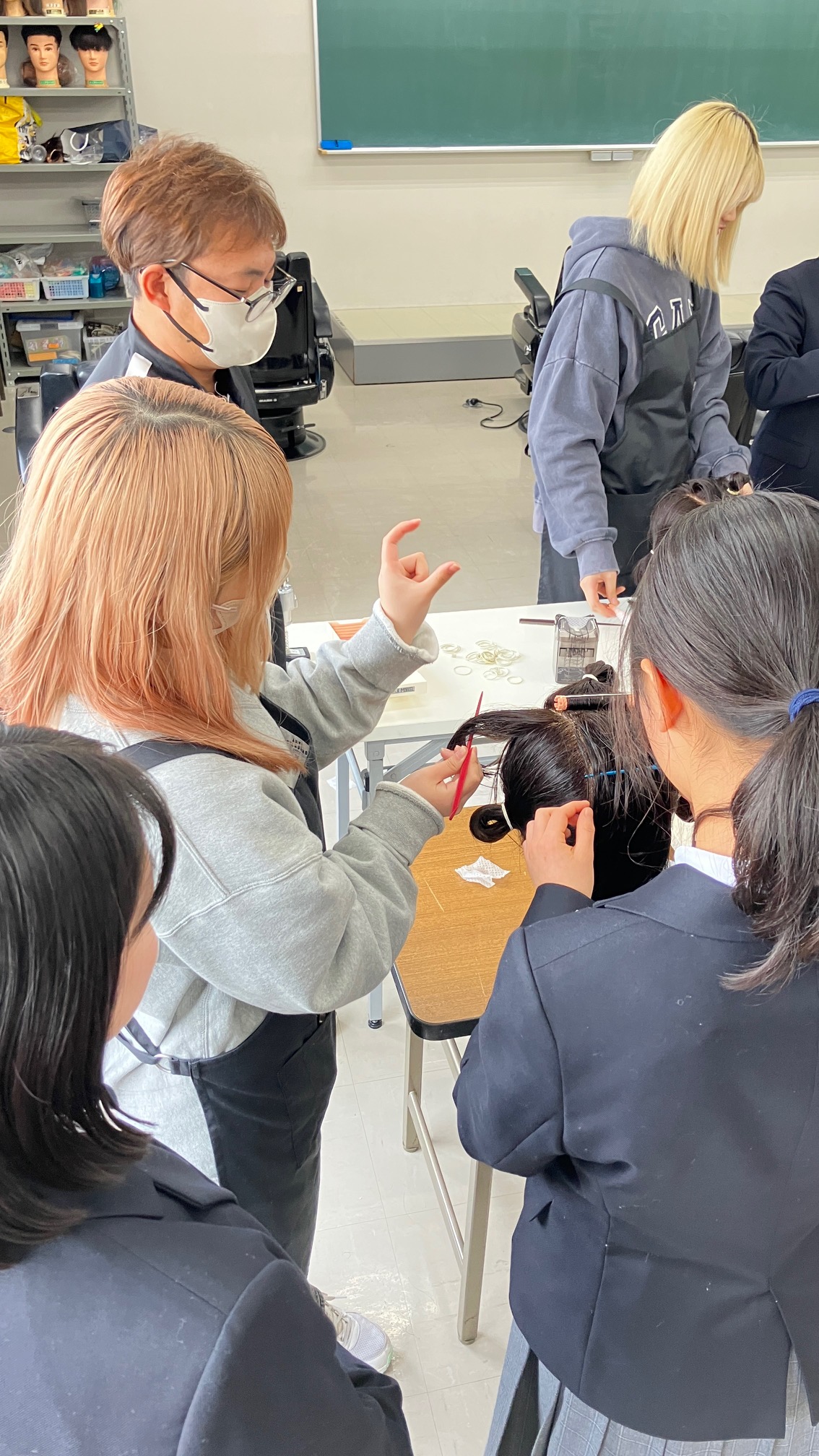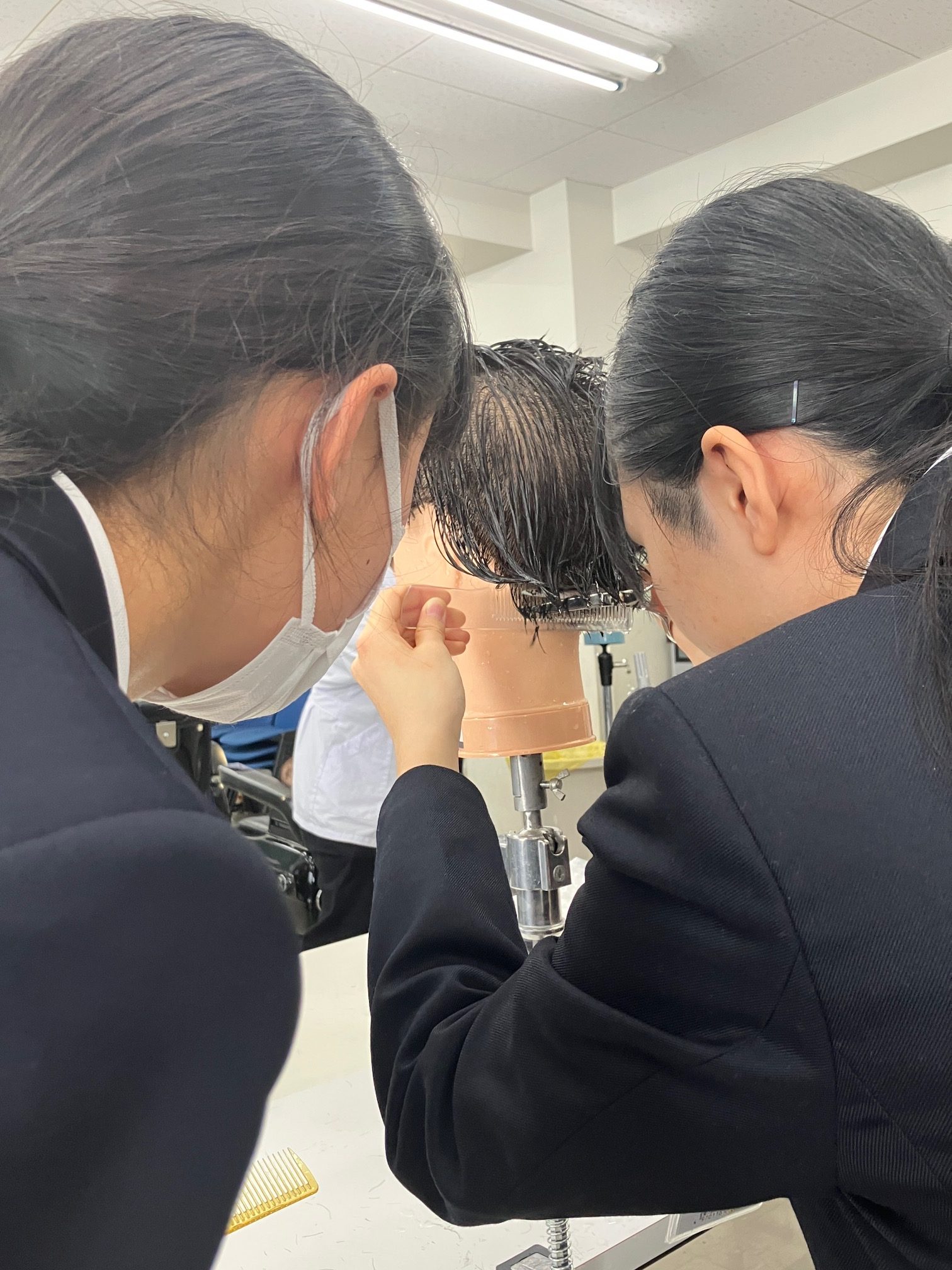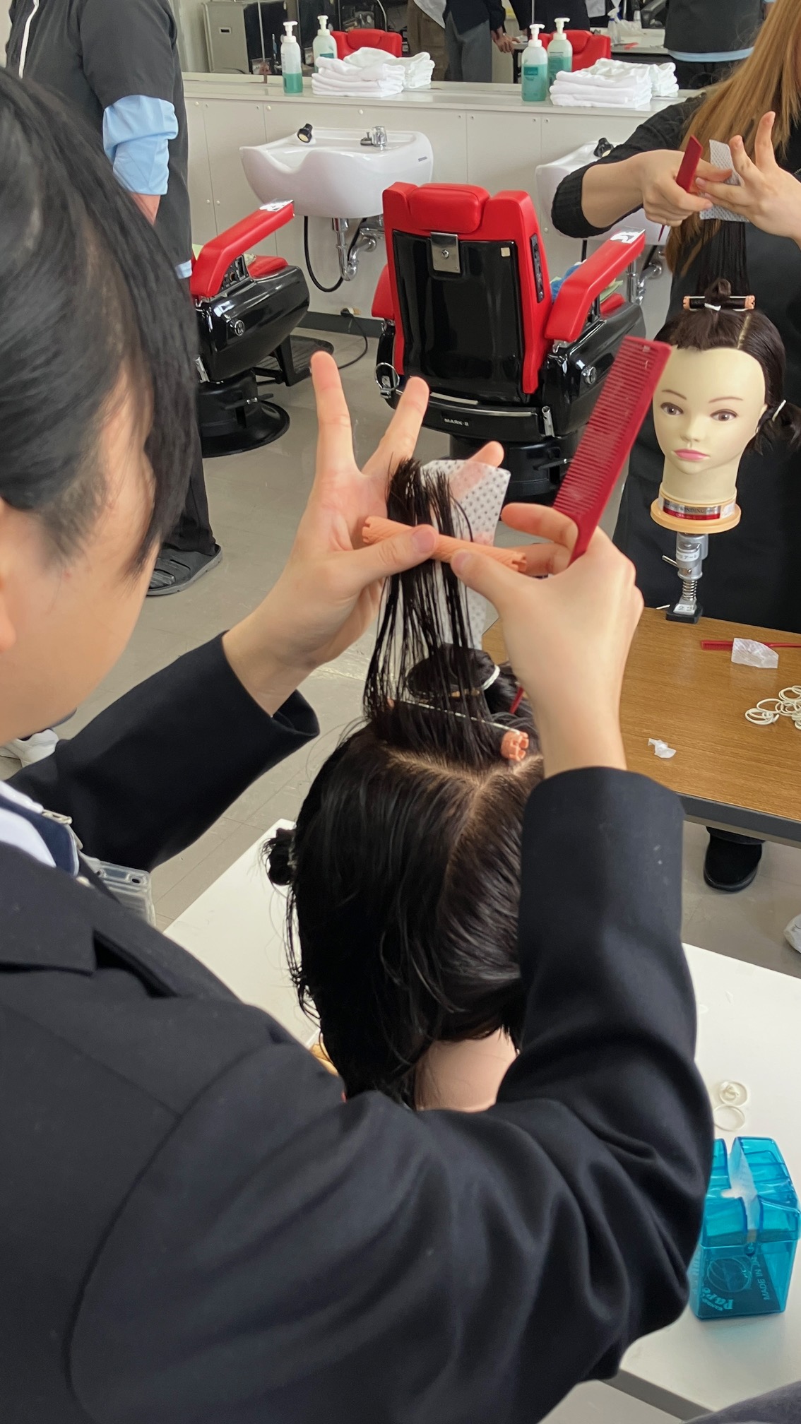 や実際にハサミを持ってカット演習も。