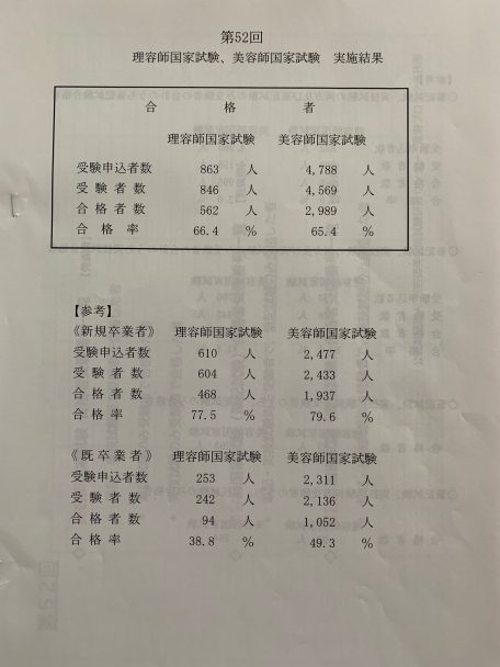 美容師国家試験の合格発表。